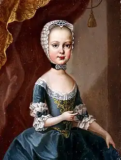 Maria Theresias Eltern, Kronprinz Joseph II. (der zukünftige Kaiser) und Prinzessin Isabella von Bourbon-Parma, wurden in Wien am 16. Oktober 1760 vermählt.[1] Am 20. März 1762 gebar sie eine Tochter, die auf Maria Theresia Elisabeth getauft wurde und sofort den Status einer Erzherzogin von Österreich erhielt. Von der mütterlichen Seite stammte die kleine Maria Theresa von Philipp V. von Spanien aus der französischen Bourbon-Dynastie ab, von der väterlichen Seite konnte sie Kaiserin Maria Theresia und ihren Gatten, den römisch-deutschen Kaiser Franz I. Stephan, als ihre Großeltern aufweisen.