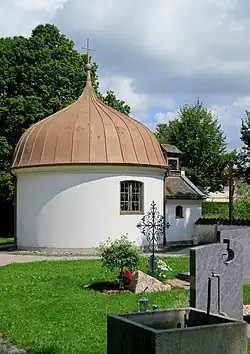 Der 1651 errichtete Zentralbau wurde 1751 erneuert. Es handelt sich um eine überkuppelte Rotunde, der im Osten ein Vorbau angefügt ist. Der Innenraum der Kapelle ist mit einer durch Pilaster gegliederte Scheinarchitektur gestaltet.