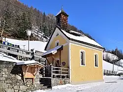Die Mariahilf-Kapelle ist ein kleiner Sakralbau über rechteckigem Grundriss mit polygonalem Chor, schindelgedecktem Satteldach und hölzernem Dachreiter. Der verschindelte Giebelreiter erhebt sich über dem Eingangsportal und besitzt rundbogige Schallöffnungen und ein Pyramidendach, das von Kugel und Kreuz bekrönt wird. Die gelb verputzten Außenwände sind an den Längsseiten von jeweils zwei flachbogigen geschlossenen Fenstern durchbrochen, die westliche Eingangswand besitzt hingegen ein korbbogig geschlossenes Portal sowie zwei darüberliegende kleine Wandöffnungen. Im Inneren wird die Decke von einem steilen Tonnengewölbe über profiliertem Gesims gebildet, eingangsseitig befindet sich eine hölzerne Empore.