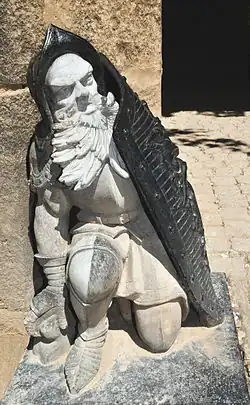 Ein Radabweiser in der Marienburg zeigt den König der Zwerge mit seinem Geschenk.