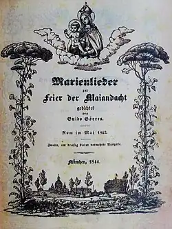 Maßgeblich für den deutschsprachigen Bereich war hierbei im 19. Jahrhundert der Schriftsteller und Publizist Guido Görres, Sohn des katholischen Publizisten Joseph Görres, mit seiner 1842 auf einer Italienreise nach italienischem Vorbild entstandenen Sammlung von Marienliedern, die er dem im gleichen Jahr verstorbenen Schriftsteller Clemens Brentano widmete. In den späteren Auflagen von 1844 und 1853 wurde der Marienzyklus stark erweitert. Den Mariendichtungen, in denen sich ein Lyrisches Ich als Stellvertreter der gesamten katholischen Christenheit in Gruß-, Lob- und Bittgedichten an die Gottesmutter wendet, wohnt ein volksliedhafter Charakter inne, wodurch sie in den deutschen Liederschatz eingegangen und bis heute bekannt geblieben sind. In seiner erweiterten Fassung umfasst der Marienandachtszyklus, der der romantischen Tradition verhaftet ist, 31 Gedichte für jeweils einen Maientag. Eine spezifische Chronologie in Bezug auf das Marienleben ist dabei nicht erkennbar. Maria wird im Maizyklus von Görres als ehrwürdige Jungfrau und Gottesmutter, als helfende Zuflucht in Gefahr und Not, als Himmelskönigin und häufig als Regina pacis gepriesen. Ihre Rolle als Fürsprecherin der Sünder oder Mediatrix tritt dabei eher in den Hintergrund. Weitere Mariengedichte sind unter dem Titel „Blumen zur Nachfeier“ im Werk enthalten. Inhalt sind marianische Gebete, zum Beispiel von Birgitta von Schweden oder Maria Stuart, die Maria als Königin der himmlischen Heerscharen und als Mater Dolorosa huldigen.[9] Die Texte der Marienlieder von Guido Görres wurden mehrfach vertont und werden regional auf verschiedene Melodien gesungen.