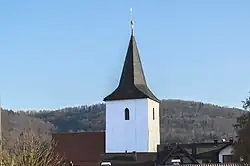 Das auffallend breite Langhaus und der Chor sind in der jetzigen Form dem Ende des 15. Jahrhunderts zuzuordnen. Das Dach beider Gebäudeteile ist mit Biberschwanzziegeln eingedeckt, das Spitzdach des Turms seit 1802 mit Schiefer.