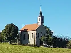 Es handelt sich um eine kleine Kapelle mit polygonalem Chor und Dachreiter.[2]