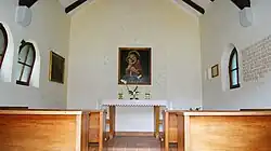 Der Altar befindet sich im Norden zum Felsabbruch hin. Der Betraum und Altarraum sind voneinander nicht deutlich abgegrenzt, lediglich eine Stufe deutet eine Grenze an.