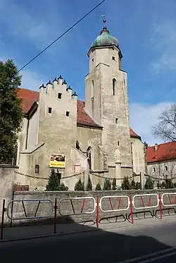 Die Kirche ist eine aus Bruchstein erbaute fünfschiffige Pseudobasilika. Der Chor in Flucht mit dem Mittelschiff besitzt einen polygonalen Abschluss. An der Nordseite wurde eine rechteckige zweigeschossige Sakristei errichtet, und an der Südseite des Gebäudes stellt der viereckige Kirchturm eine Verbindung zum Kirchenschiff her. Die Kirche ist als Beispiel einer Stufenhalle in Verbindung mit einem Langchor bemerkenswert. Ähnlich wie in Liegnitz setzen die Gewölbe erst ein Stück über den Arkaden direkt auf der Wandfläche an, wobei auf vertikale Verbindungselemente zwischen Pfeilern und den Gewölbeanfängern verzichtet wird. Im Unterschied zu Liegnitz ruhen die Arkaden auf Achteckpfeilern und nicht auf länglichen Wandstücken. Zusätzlich zur Westfassade sind Turm und Sakristei mit Strebepfeilern verstärkt. Außerdem sind die Kirchenmauern von einem profilierten Sockel und einem Kapitellgesims umgeben. Die Portale im Süden und Westen sind profiliert, mit konsolierten, zu Eselsrücken geformtem Wimperg. Das Südportal wird zusätzlich von reliefierten Fialen flankiert, und sein Tympanon zeigt ein Weinrebenmotiv. Das fünfjochige Kirchenschiff hat Kreuzrippengewölben, ebenso wie die drei Joche des Chors, von denen das östlichste zwei zusätzliche Rippen aufweist. Ein spätgotisches Sterngewölbe überdeckt die Sakristei.