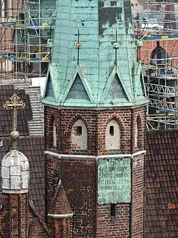 Am 4. Mai 1613 wurde der S. Jakob-Turm vom Blitz getroffen und brannte bis auf das Mauerwerk ab. 1618 wurde der Turm wie vormals mit einem Kupferdach wieder aufgebaut.[5] (Die Inschrift am Turm weist auf dieses Ereignis hin.)