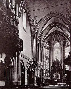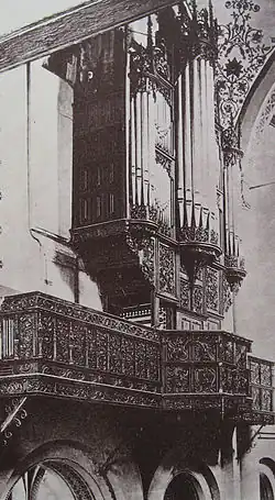 Das Gehäuse der spätmittelalterlichen Orgel, die im Jahr 1520 wahrscheinlich Johann von Schwerte errichtet hatte,[29] wurde bei einem Bombenangriff im Zweiten Weltkrieg zerstört.