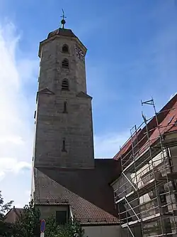 Mit ihrem 40 Meter hohen freistehenden Turm zählt die Marienkirche neben der Basilika St. Vitus zu den von Weitem sichtbaren Wahrzeichen der Innenstadt von Ellwangen.