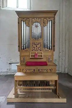 Die 1988 gestiftete Chororgel wurde von der Orgelbaufirma Hillebrand erbaut. Es handelt sich um den Nachbau einer Renaissanceorgel. Das Instrument mit mechanischer Traktur hat acht Register auf zwei Manualwerken. Neben einer Manualkoppel lassen sich beide Manualwerke an das Pedal koppeln. Der Subbass 16′ im Pedal ist über eine elektrische Traktur anspielbar. Die Disposition lautet wie folgt:[7]