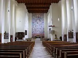 Auch im Innenraum wurde überwiegend Treuchtlinger Marmor und Holz verwendet. Der große Hochaltar, auf dem der Tabernakel steht, besteht aus einer einzigen massiven Marmorplatte von mehr als 2500 Kilogramm Gewicht.