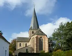 Die um 1130 errichtete Klosterkirche ist eine kreuzförmige romanische Anlage mit Vierungsturm. In der Mitte des 15. Jahrhunderts wurde eine gotische Ostapsis errichtet. Nach dem Umzug des Stifts nach Kleve 1604 verfiel die Klosterkirche; die Folge war der Abbruch der Klostergebäude und der Kirche bis auf den Turm und den Ostflügel 1774. 1900–1902 wurden die fehlenden Teile der Kirche in neuromanischen Formen wiedererrichtet.