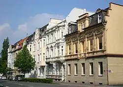 Erfolgreicher und nachhaltiger waren dagegen die planerischen Bemühungen, auf der anderen Seite der Mülheimer Straße im Osten der Marienkirche ein großzügig angelegtes gehobenes Wohnviertel zu schaffen, das gewissermaßen als „Puffer“ zwischen dem Stadtzentrum und den weiter östlich gelegenen Arbeiterwohnsiedlungen fungieren sollte. Alleen, teilweise mit Mittelpromenaden, offene Bebauung und klangvolle Namen wie Bismarck-, Goethe- und Schillerstraße signalisierten ein „solides gutbürgerliches Wohngebiet“, das neben dem Rathausviertel und der Siedlung Grafenbusch zu den besten Adressen Alt-Oberhausens gehörte.[3] Als Gegenstück zur Marienkirche entstand im Zentrum dieses Viertels die 1899 eingeweihte Lutherkirche.