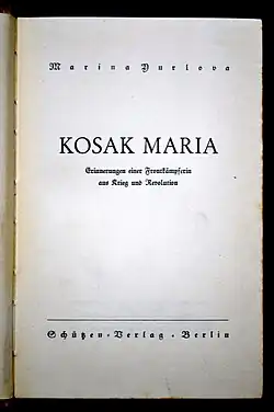 Marina Yurlova, russisch Марина Максимилиановна Юрлова ‚Marina Maximilianowna Jurlowa‘; (* 25. Februar 1900[1] in Rajewskaja[2] bei Jekaterinodar; † April 1984 in New York) war eine Kosakin, im Ersten Weltkrieg diente sie in der Russischen Armee. 1917 erlebte sie die Oktoberrevolution und floh in die Vereinigten Staaten. Sie war zudem Schriftstellerin und Ausdruckstänzerin zu klassischer Musik.[3] Ihre Autobiographie machte sie als „Kosakenmädchen“ bekannt, wurde aber auch als unglaubwürdig kritisiert.