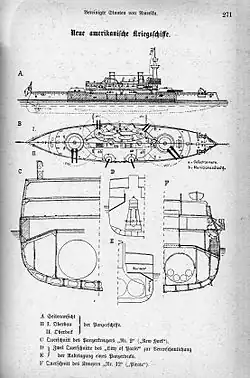 M. Angaben über fremde Kriegsschiffe (z. B. Versuche mit dem amerikanischen Dynamitkreuzer USS Vesuvius)
