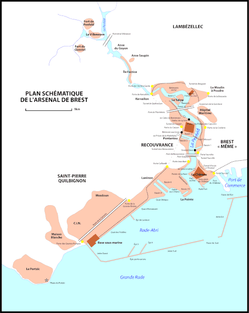 Die Marinebasis Brest ist Heimathafen der Überwassereinheiten der französischen Atlantikflotte; die Einrichtung war früher als Arsenal Brest (Arsenal de Brest) bekannt.