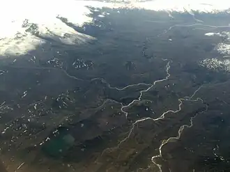 ![]() Oberer Markarfljót mit dem Gletscher Myrdalsjökull, links. Aussicht von Norden nach Süden | ||
