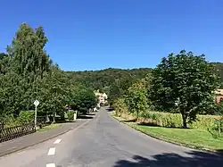 ![]() Osterlochweg in Markershausen mit evangelischer Kirche