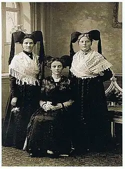 Die Dotschkappe entwickelte sich weiter zu einer Flügelkappe, wobei die Schleifen (Flügel) zunächst noch klein waren.[3] Die Schleifen wuchsen und erhielten an den Enden kurze Fransen. Um etwa 1850 findet man bei den älteren Frauen noch die kleinen Schleifen ohne Fransen, während bei den jüngeren Frauen schon die etwas größeren Schleifen mit Fransen zu sehen sind.