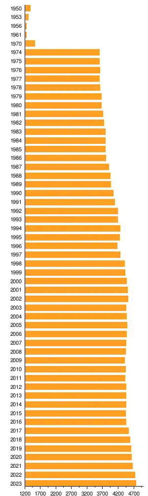 | 1975² | 3.600 | 1.686 | 1.914 |