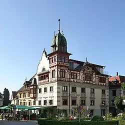 Das Wahrzeichen Dornbirns, das Rote Haus, im Zentrum des Bezirks | |