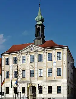 - ↑ Katja Altmann: Der beschwerliche Wiederaufbau des Radeberger Rathauses und sein berühmter Baumeister. In: Große Kreisstadt Radeberg in Zusammenarbeit mit der Arbeitsgruppe Stadtgeschichte (Hrsg.): Radeberger Blätter zur Stadtgeschichte. Band 8, Radeberg 2010.