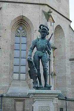 Die Bronzefigur von 1950 ist eine Kopie einer Steinfigur des 16. Jahrhunderts, die in der Balinger Zehntscheuer aufbewahrt wird. Die anonyme Figur wird von den Balingern auch als „Ulrich“ bezeichnet und gerne mit Herzog Ulrich identifiziert.[1]