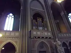 Der letzte Umbau und Erweiterung datiert aus dem Jahr 1982 (Gebr.Oberlinger, Windesheim), bei der man die Anzahl der Register auf insgesamt 85 (73 in der Hauptorgel, 12 in der Chororgel) erweiterte. 20 davon stammen noch aus der Ursprungsorgel von 1863.[9] Das Instrument hat insgesamt 6198 Pfeifen. Die Spiel- und Registertrakturen sind elektrisch. Der Hauptspieltisch stammt aus dem Jahre 1982 und ist nach dem Vorbild französischer Cavaillé-Coll-Orgeln angelegt.[10] Er verfügt über eine digitale Aufnahme- und Wiedergabeeinrichtung, welche bei Aktivierung die Ton- und Registermagnete ansteuert. Das Chamadenwerk ist frei ankoppelbar.