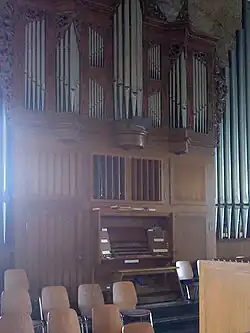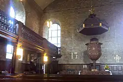 Von der bis 1731 vollendeten Ausstattung sind noch die auf einem Palmbaum freistehende Kanzel und die an drei Seiten umlaufende Empore erhalten.