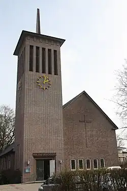 Die Kirche wurde in den Jahren 1953/1954 unter der Leitung des Architekten Walter Ahrendt erbaut und am 16. Dezember 1956 eingeweiht. Ein Gemeindehaus und ein Pastorat ergänzen die Kirche.[2]