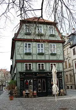 Die Einrichtung des im Erdgeschoss befindlichen, jetzt als Restaurant genutzten Ladens ist im Stil der Neogotik gestaltet und stammt bereits aus der Zeit um 1820[3], nach anderen Angaben um 1840[4]. Bei diesen Umbauten wurde das Haus auch verputzt. 1965 wurde der inzwischen schadhafte Putz entfernt und dabei starke Bauschäden an der Fachwerkkonstruktion festgestellt.