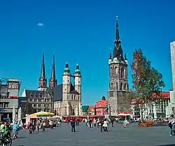 Der Marktplatz in Halle (Saale) ist der zentrale und historisch bedeutsame Hauptplatz in der Altstadt von Halle (Saale) in Sachsen-Anhalt, Deutschland und gilt als einer der größten Marktplätze Deutschlands. Neben dem Hallmarkt ist er einer der mittelalterlichen Siedlungskerne der Stadt.