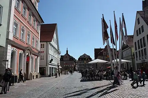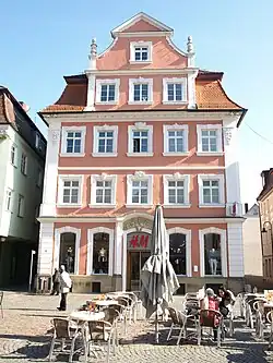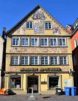 Das Mansarddachhaus der Oberen Apotheke (ehemals Ratsapotheke) wirkte bis 1860 als stattliches Fachwerkhaus. Die Ursprünge reichen ins beginnende 16. Jahrhundert. Es verfügt über zwei Dachstühle, wobei der hintere auf die 1520er-Jahre datiert ist. Die Apotheke findet erstmals 1531 Erwähnung. Heute erinnern noch Teile der Apothekeneinrichtung aus dem 19. Jahrhundert an die lange Tradition. Das Haus verfügt über einen Gewölbekeller und ein Rokokotreppenhaus. Im Haus befindet sich zudem ein Gemälde Christus als Apotheker, das ursprünglich aus der Kronenapotheke in Biberach an der Riß stammte.
