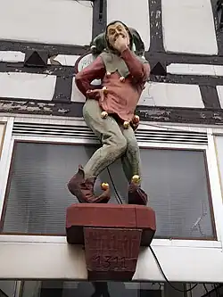Gemäß der Stadtchronik des Bürgermeisters Heinrich Fischer hatte der Vorgängerbau des heutigen Hauses die Nummer 147 und wurde 1311 durch die in Warburg und Umgebung begüterten Patrizierfamilie von Geismar erbaut.[2] „In der Mitte auf dem Frontispice stand eine Statue, welche die eine Hand im Munde, die andere ad posteria hielt. Daher der Name Eulenspiegel. Rings um dem Dache herum standen andere Figuren.“[3] Ob das Haus bereits damals den Namen „Eulenspiegel“ gehabt hat, ist fraglich, denn die literarische Figur erschien erst im 16. Jahrhundert. Die Erwähnung von Figuren auf dem Dach verweist ebenfalls eher in die Renaissancezeit.