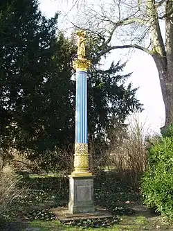 Im südwestlichen Gartenbereich steht eine von Ludwig Ferdinand Hesse entworfene und durch die schlesische Josephinen-Glashütte der Grafen Schaffgotsch 1854 ausgeführte blau-weiß gestreifte Säule aus kannelierten Glasröhren. Das vergoldete korinthische Kapitell bekrönt die vergoldete, von Heinrich Berges entworfene und durch Siméon Pierre Devaranne ausgeführte Zinkgussplastik Mädchen mit Papagei. Die Säule war ein Geschenk Friedrich Wilhelms IV. an seine Gemahlin Elisabeth. Die Farbwahl der Glasröhren weist auf die bayrische Herkunft der Königin hin. Säule und Plastik stürzten kurz nach dem Zweiten Weltkrieg von ihrem Sockel. Die zerbrochene Säule wurde „aus allen verfügbaren Fragmenten“ rekonstruiert,[19] die Figur restauriert[20] und im Mai 2002 zusammen mit dem denkmalpflegerisch wiederhergestellten südlichen Teil des Marlygartens eingeweiht.[21] Eine zweite Ausführung dieser Säule befindet sich im Rosarium auf der Roseninsel im Starnberger See. Sie war ein Geschenk Friedrich Wilhelms IV. an das bayrische Königspaar Maximilian II. und Marie von Preußen (1825–1889), mit dem das preußische Königspaar verwandtschaftlich verbunden war. Eine dritte baugleiche Säule schenkte er seiner Schwester Charlotte, der Zarin Alexandra Fjodorowna, die sie auf einer Insel im Kolonistskiy Park (Колонистский парк) in Peterhof aufstellen ließ.[22]