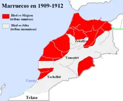 Frankreich trat den nördlichen Teil seines neu errichteten Protektorats durch den Vertrag vom 27. Nov. 1912 an die spanische Verwaltung ab.[7] Mittelsmann zwischen Spanien und dem Sultan war der Kalif von Tétouan.