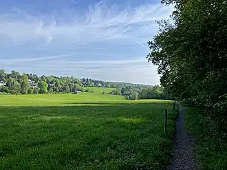Nördlich der Ortslage befindet sich die geschlossene Wohnbebauung des Wohnquartiers Lichtenplatz, insbesondere die gehobene Bebauung des Villenviertels am Toelleturm und an der Adolf-Vorwerk-Straße. Südlich beginnt das umfangreiche Gelände des ehemaligen Standortübungsplatzes Scharpenacken, westlich steigt das Gelände sanft bis auf die Höhe des Lichtscheids an.