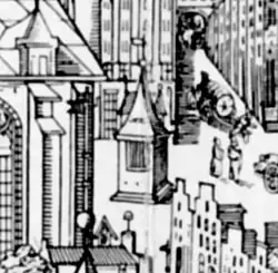 Das für die Marstallherren auf dem Koberg errichtete, nach dem dort tagenden Gericht als Burrecht bekannte Gebäude ist auf der Stadtansicht des Elias Diebel von 1552 zu erkennen: Auf einem niedrigen zweistufigen Sockel befand sich ein Pavillon mit quadratischem Grundriss und Pyramidendach, auf dessen Spitze sich eine Wetterfahne erhob.