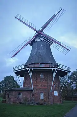 • 1871 wurde die Fehsenfeldsche Mühle als ein dreistöckiger Galerie-Holländer erbaut. Die Mühle wurde 1904 aufgrund von Kundenmangel verkauft. Bis zum Jahr 1971 wurde der Mahlbetrieb aufrechterhalten. Restauriert wurde die Mühle im Jahr 1991, die vier Mahlgänge sind erhalten geblieben. Die Mühle wird für „Mühlenhochzeiten“ genutzt.