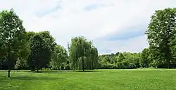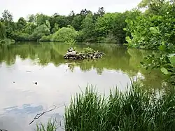 Im Jahr 1971 wurde im Park in der Tongrube einer ehemals dort ansässigen Ziegelei ein etwa 4.800 m² großer, naturnah gestalteter Teich angelegt. Das zwischen 50 und 80 cm flache Stillgewässer wird von Grundwasser gespeist. An seinem Ufer stehen unter anderem ein Röhricht-Gürtel sowie Weidenbäume (Salix).[2] Zu den weiteren Einrichtungen im Park zählen ein Abenteuerspielplatz, ein Streetball- und Basketballfeld, Bolzplatz, Liegewiese, Spazierwege sowie eine Hundewiese.[1]