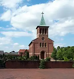 Es handelt sich um eine fünfjochige Saalkirche aus Backstein im Stil der Neuromanik mit Turm und Apsis. Die Kirche ist durch lisenenartige Strebepfeiler gegliedert, über den rundbogigen Fenstern befinden sich Rundbogenfriese.