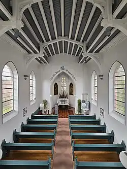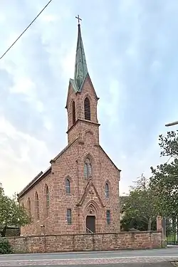 Die neugotische Saalkirche wurde 1896 mit Backsteinen errichtet. Sie hat ein Langhaus mit einem Satteldach und im Westen einen eingezogenen, dreiseitig geschlossenen Chor. Der mit einem spitzen Helm bedeckte Fassadenturm im Osten, in dem sich das Portal befindet, beherbergt in seinem obersten Geschoss den Glockenstuhl. Die 1873 von Johann Heinrich Schäfer gebaute Orgel mit zwölf Registern, einem Manual und einem Pedal wurde 1994 von Richard Rensch restauriert.[2]
