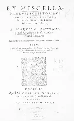 - Miscellanea scriptorum ad universum ius civile. Paris 1580.