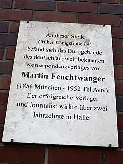 Feuchtwanger war zunächst Redakteur, dann Chefredakteur der Saalezeitung und in der Folge Gründer und Leiter des Fünf-Türme-Verlages in Halle.