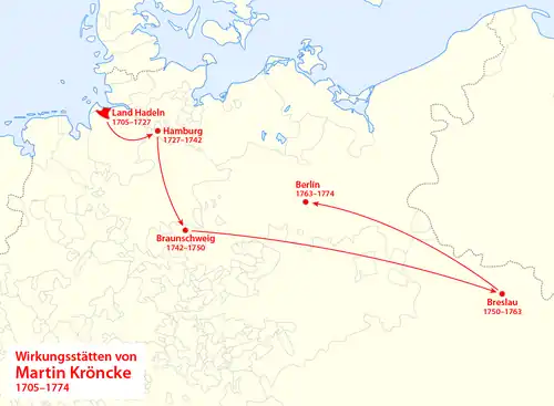 - ↑ a b Karl-Heinz Buhse: Vom Hadelner Bauernjungen zum Generalmünzdirektor Friedrichs d. G. – Martin Krönckes Leben und Wirken. Ein Versuch. In: Gesellschaft für Internationale Geldgeschichte (Hrsg.): Geldgeschichtliche Nachrichten. 21. Jahrgang. Nr. 112. Eigenverlag, 1986, ISSN 0435-1835, S. 85.