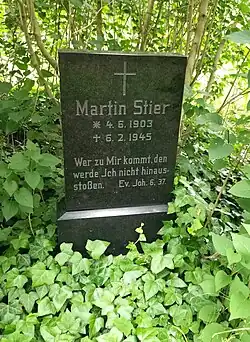 Stier verunglückte im Februar 1945 tödlich bei Löscharbeiten an der Kirche seines Vaters nach einem alliierten Fliegerangriff auf Berlin.