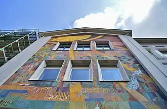 | Eingang und Fassade der Martinschule während der Baustelle im Juni 2015 | |