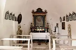 Links vom Hauptaltar an die Wand gelehnt ist ein zweiter, kleinerer barocker Altar aus der gleichen Entstehungszeit aufgestellt, der möglicherweise von der bei der Flutung des Reschenstausees zerstörten alten Pfarrkirche St. Katharina in Alt-Graun stammt. Darüber hängt ein ovales Gemälde in einem hölzernen dunkelbraunen Rahmen, das das Jesuskind mit Malteserkreuz als König unter Königen zeigt. Weitere Kunstgegenstände wie beispielsweise kleinere Gemälde, eine Madonnenfigur mit Jesuskind auf einem hölzernen verzweigten Aufsatz, antike Kerzenleuchter sowie Kreuzwegstationen in Form von Stahlstichen füllen den Raum zusätzlich aus.