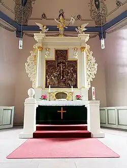 Zusammen mit dem Neubau von 1735 errichtete man einen barocken Altaraufbau, in den der Mittelschrein eines flämischen Flügelaltars aus dem Spätmittelalter eingepasst wurde. Dieser ist von besonderer Qualität und kunstgeschichtlicher Bedeutung, weil er wichtige künstlerische und ikonographische Tendenzen der niederländischen Kunst aufgreift. Bildthema ist die bühnenartig ausgebaute Szenerie eines „volkreichen Kalvarienbergs“. Seine Qualität schließt aus, dass er ursprünglich für eine Dorfkirche bestimmt war. So vermutet man, dass das Bildwerk auf eine fürstliche Erwerbung oder Beauftragung zurückgeht und ursprünglich von Anna, der Witwe des Herzogs Friedrichs des Frommen für die 1485 geweihte Celler Schlosskapelle erworben wurde. Er wurde 1989/1990 restauriert.[1]