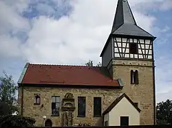 An der Außenwand der Kirche befindet sich das Epitaph für Jörg Enzberger († 1606), der als Hofmeier das Herrschaftsgut in Frauenzimmern verwaltet hat und auf den mehrere bedeutende Bauten des Ortes zurückgehen.