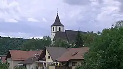 Die um 1500 gebaute Saalkirche besteht aus einem Langhaus, einem eingezogenen, dreiseitig geschlossenen Chor im Osten und einem Chorflankenturm an der Südwand des Chors, der im 18. Jahrhundert um ein Geschoss, das die Turmuhr und den Glockenstuhl beherbergt, aufgestockt und mit eine Knickhelm bedeckt wurde. Der Innenraum des Langhauses ist mit einer Flachdecke überspannt, der des Chors mit einem Kreuzrippengewölbe, dessen Gewölberippen auf Konsolen aufsetzen. Die Orgel wurde von der Orgelbau Tzschöckel gebaut.[1]